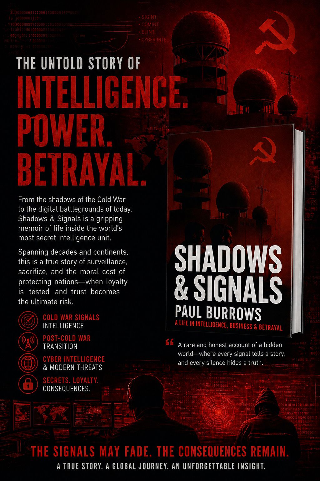 Cover art for Shadows & Signals. Text reads: “The untold story of intelligence. Power. Betrayal.”